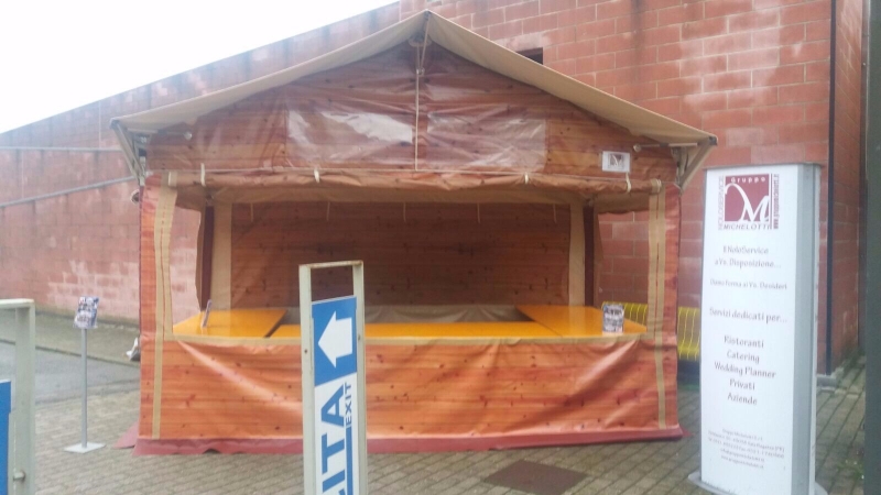 Automontante in finto Legno di Misure. Noleggio Chalet Linea Professionale con Telaio in Alluminio e Copertura e pareti in Finto legno Pvc ignifugo cl.2 – Leggero e Facilissimo da trasportare §