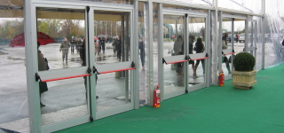 Noleggio porte per tensostrutture. Porte in alluminio o metallo fornite di maniglione antipanico